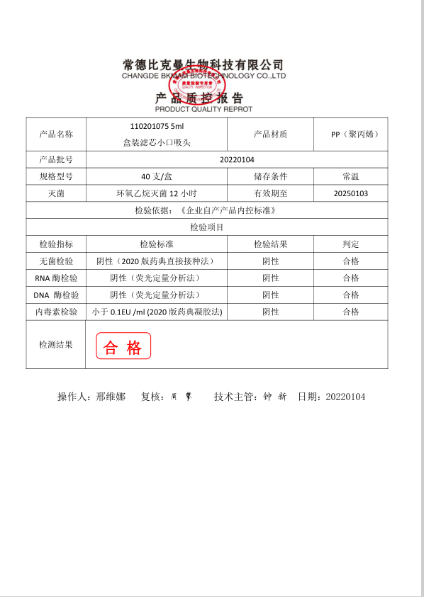 盒裝濾芯吸頭 5mll 盒裝濾芯小口吸頭 40支裝 110201075 20220104